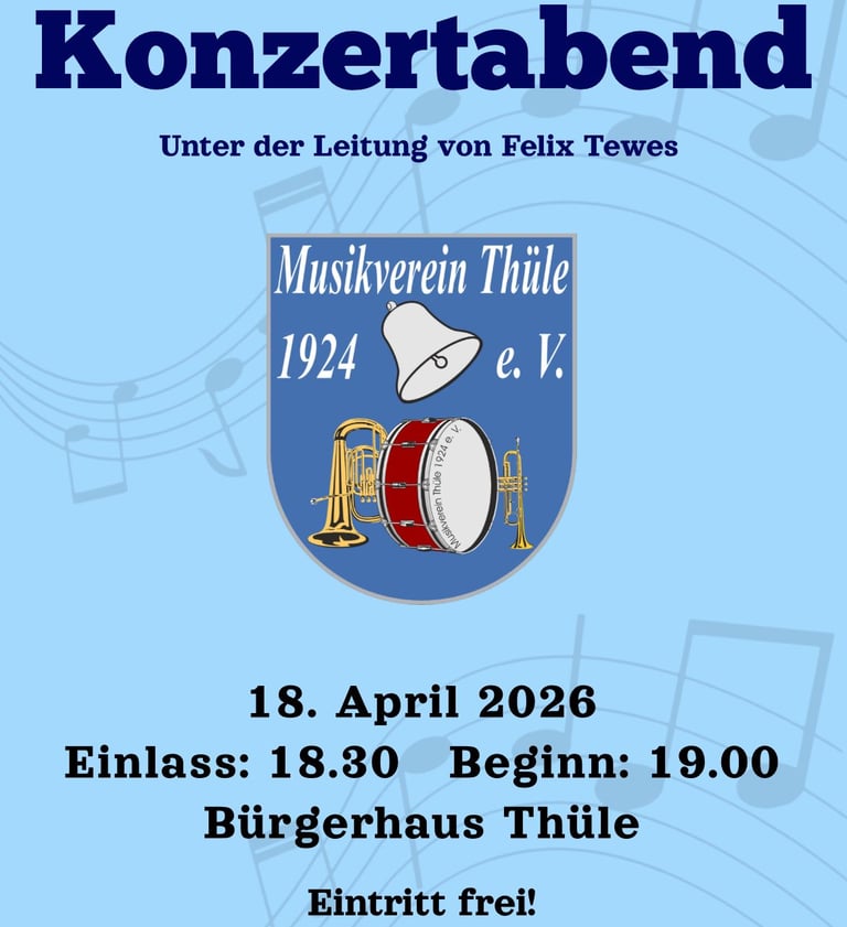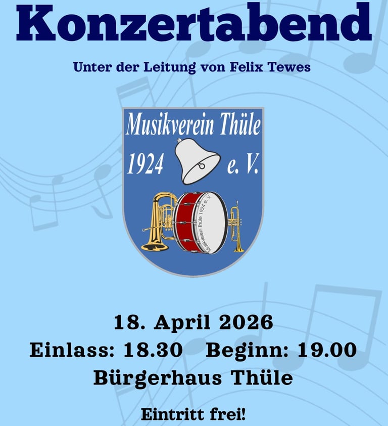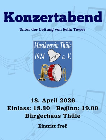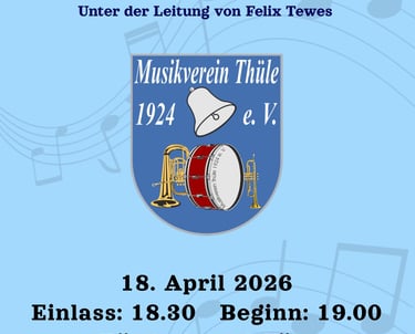 → Am 18.04.2026 spielen wir im Bürgerhaus Thüle unser diesjähriges Konzert.
